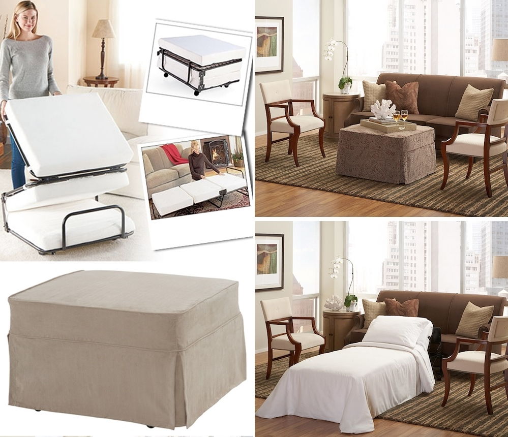 9. Space Saving Ottoman Bed: This slipcover is soft to the touch with a subtle herringbone design that works beautifully with all colors from stark white to jet black. It is available only in the classic pleated design, shown here, but you can choose either the single ottoman bed or twin ottoman bed size. Delivery is free. (via Castro Convertibles)
