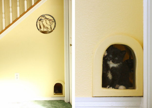 14. Tucked Under The Stairs: Most of the time we have our cats outside, but with the kittens being so little, they’re currently house cats. A major problem with indoor cats is the litter (via Owlhaven)