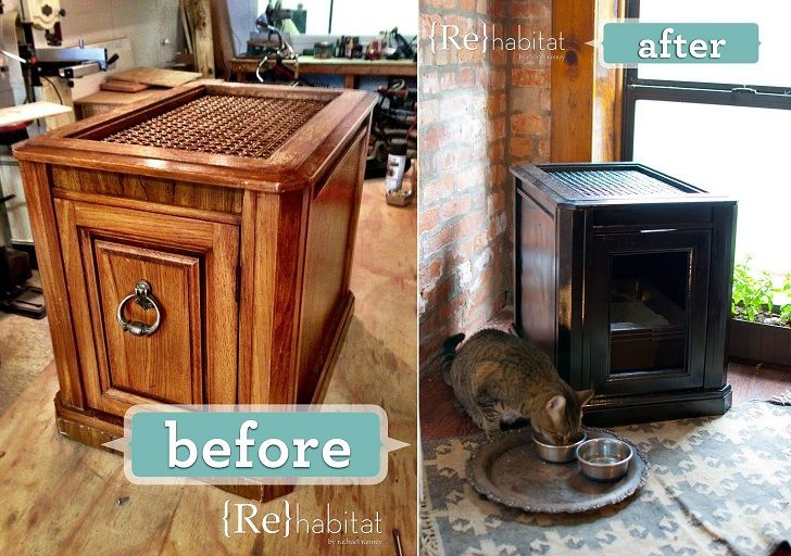 Turn any small cabinet into a stylish way to hide your litter box, with a convenient removable top and cat door.… (via Buildipedia)