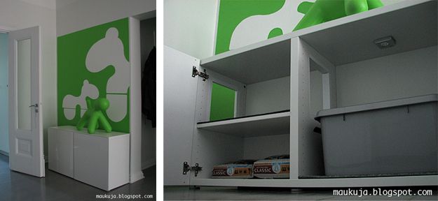 17. Litter Box Hider: Sariis at it again! Last time she showed us her awesome DIY cat tower, that was based on Colin’s Kitty Castle. This time she used her signature green and white to create a stylish and functional litter box hider with a good old IKEA Besta shelf unit. By cutting two holes in the shelf one in (via Haus Panther)