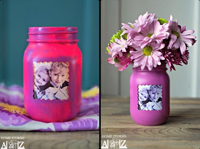 29. Mason Jar Picture Frame Vase: I am a Lowes Creative Ideas Blogger and each month we are issued a project challenge…should we choose to accept it!For March, we were tasked with showing off Pantone’s Radiant Orchid paint by Vals (via Home Stories A to A)