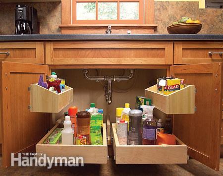 5. Kitchen Sink Storage Trays: Build these handy undersink roll-out trays in a weekend. You can tackle this project with simple carpentry tools and some careful measuring. You can make all the trays in an afternoon using building products from your local home center or hardware store for as little as $80. (via Family Handyman)