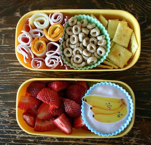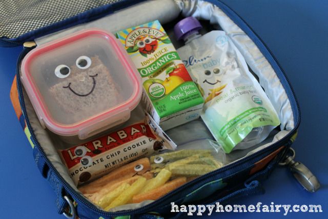 1. Pack it with fun, add some googly eyes: The Happy Buddy eats THE SAME thing for lunch EVERY DAY. If I try to sneak in something different (unless it’s in the form of chocolate) he will revolt. This means that I can’t do all those fancy pants Bento Lunch Box Ideas that are out there, so I had to come up with a (via Happy Home Fairy)