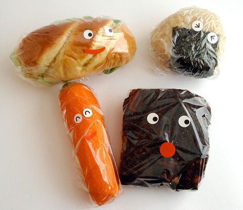 4. Create cute faces with stickers: Just Bento: Practical, healthy bento box lunches for everyone. (via Just Bento)