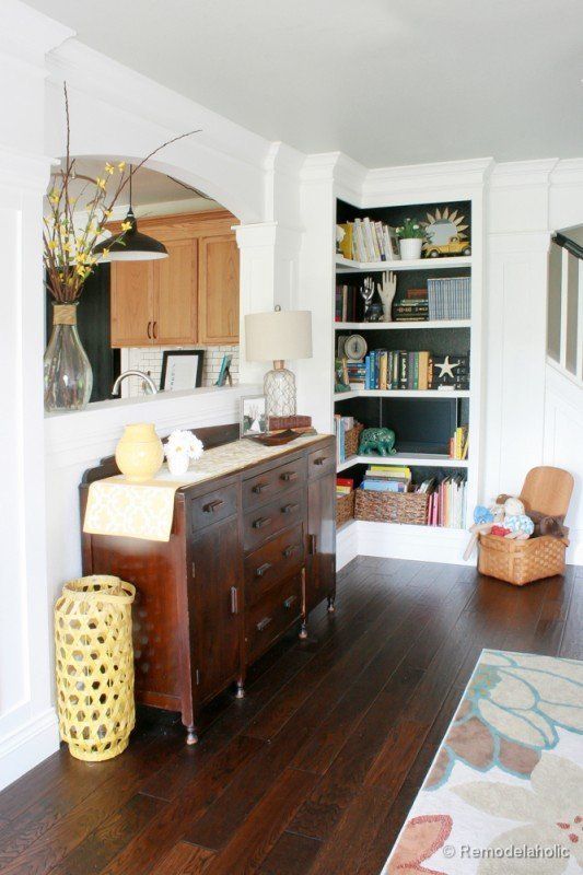 12. Corner Bookshelves: Click here to see free plans for how you can make your own custom built-in corner bookshelves. (via Remodelaholic)