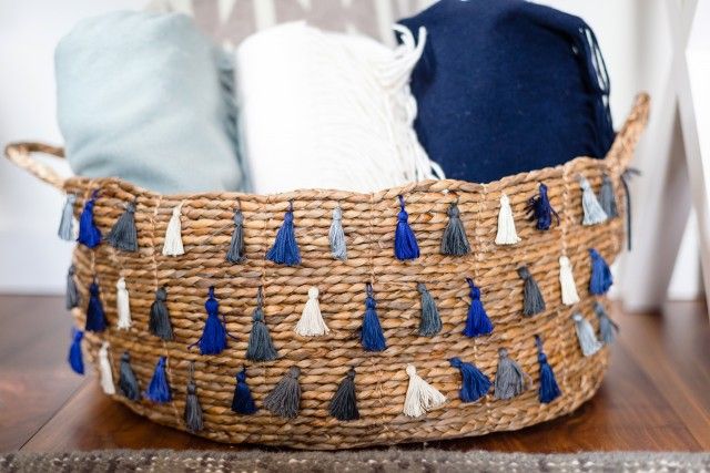 19. Tassel Basket: With a toddler who has accumulated an excessive collection of toys, a family who has an obsession with cashmere throw blankets, and a DIYer (that would be me)who purchase sway too much yarn, baskets are essential in our family. So when designing our living room with One Kings Lane, stylist (via HonestlyWTF)