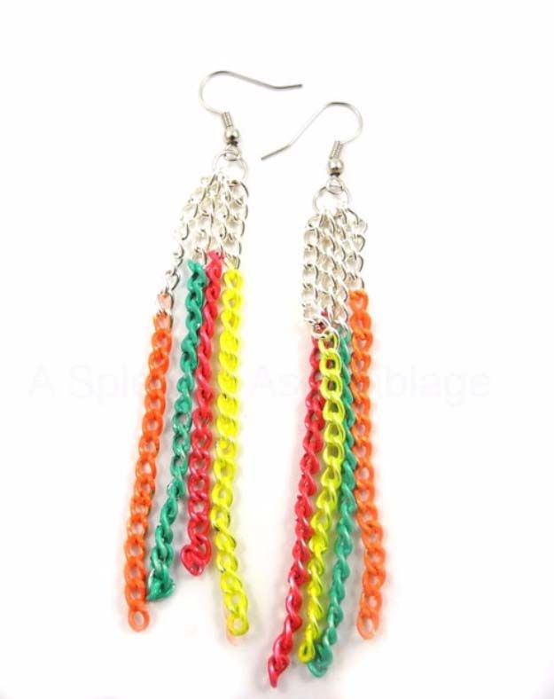 8. Neon Chain Earrings: Make your own neon chain earrings with your favorite nail polish colors! (via A Splendid Assemblage)