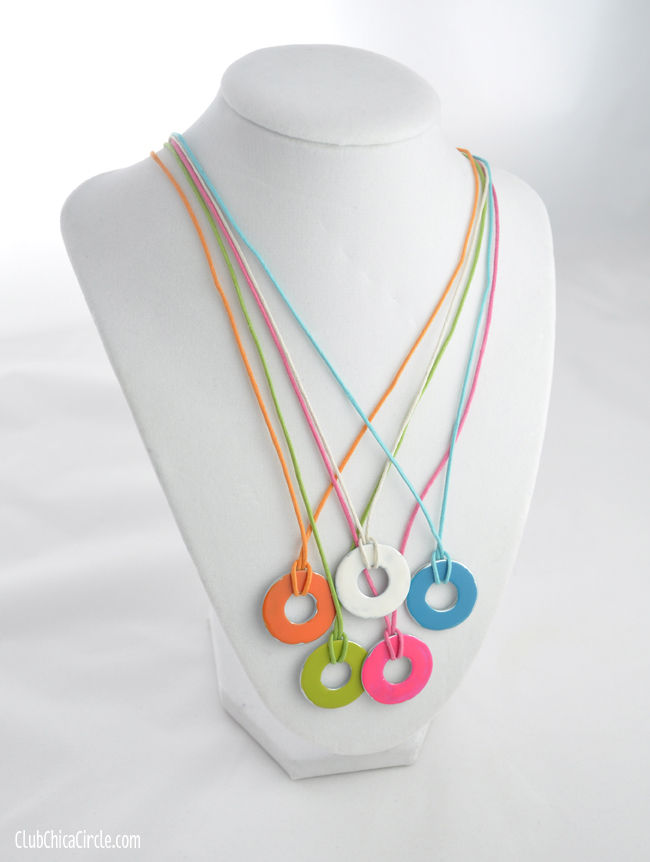 13. Friendship Necklaces: Turn a simple metal washer and some colored nail polish into super cute friendship necklaces. Inspired by the new Disney Super Buddies movie, we has fun (via Club Chica Circle)