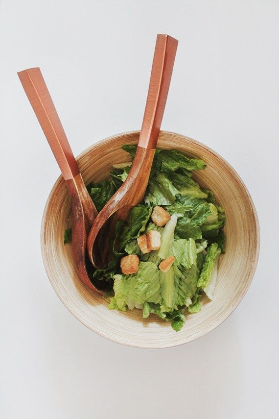 23. Copper Salad Servers: well here’s the simplest DIY i’ve done in a while! i have to say it was pretty fun to be done with a project in a couple of minutes. we’ve been going hard watching (via Almost Makes Perfect)