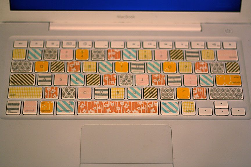 20. Washi Tape Laptop Keyboard: Look whose little old MacBook got a facelift this weekend! I spotted this idea from minifanfan on Making It Lovely last week and just had to give it my own spin. I purchased my Japanese washi tape from Le Box [] (via Her New Leaf)