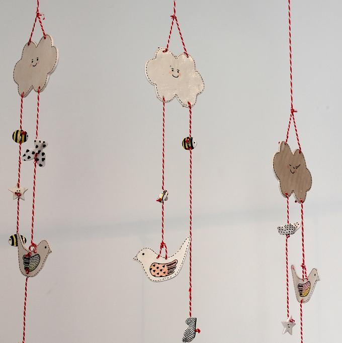 16. Cloud Clay Mobile: Inspired by this tutorial on creaturecomfortsblog(which in itself is a really adorable blog), and given my current fetish with all things made of clay, I decided to have a go at making a little air-dry clay mobile of my own for my little one’s bedroom. I recently put some sticky stars on her ceiling (via Little Button Diaries)