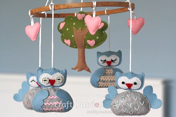 18. Nursery Owl Mobile: Get the pattern & tutorial on sewing a cute nursery owl mobile. Template included. Great as baby shower gift, even kids love to have it in their rooms. (via Craft Passion)