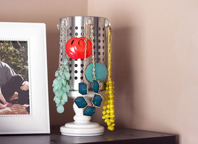 24. IKEA Utensil Jewelry Organizer: Just in case you missed all the fun yesterday, or wanted more details on this DIY, I thought Id share my jewelry organization solution today. Holly & I were asked to be a part of (UT) Studio 5s IKEA +$10 Challenge. They give you an item to use plus a $10 budget. Here’s the item…Read More (via My Sister’s Suitcase)