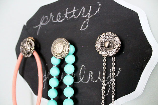 25. Chalkboard Necklace Hanger: As long as little one’s are under my roof, I can guarantee you won’t find a DIY project on here that seems overcomplicated. Simplicity is absolute bliss over here!…unless we’re talking ice cream toppings, then I say BRING ON THE COMPLICATION BABY!!!…Okay, I’ll calm down and stop (via The Patriotic Peacock)