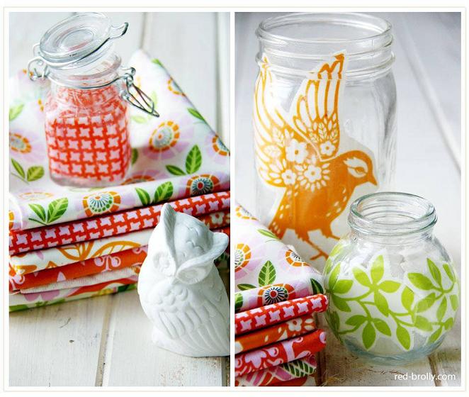 21. Fabric Scraps Pretty Jar: Time to pimp your jars and use up some of those fabric scraps you have lying around to clean up your crafting space. This is a quick and easy project to use up your fabric scraps and make some pretty jar storage containers at the same time. Jars seem to accumulate in the backs of…Read More (via Red Brolly)