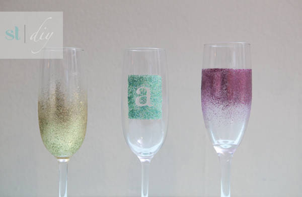 23. Glam Glasses: Looking for a fun way to dress up glassware or make a custom gift? Use our original step by step tutorial to make dishwasher safe glitter champagne glasses! (via Something Turquoise)