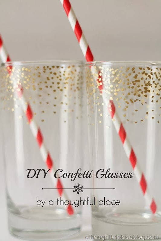 24. Gold Confetti Dot Glass: Have you all seen the new holiday line at Target? They have the cutest confetti glassware. I recently scooped one up to use in last weeks design adventure. I will show you more of that later this week. But this weekend I found myself with two extra glasses and a gold leaf pen. It was (via A Thoughtful Place)