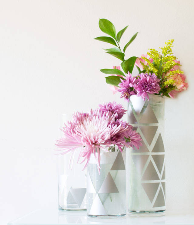 29. Geometric Glass Vase: I love seeing all the geometrics happening in interior design. If you look closely, you’ll notice it everywhere. So when I had the chance to play with some geometric decals recently, I was completely on board. Its fun to add a little bit of trend to keep your spaces spontaneous. But for me its (via Homeology Modern Vintage)
