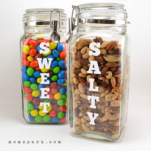 27. Craving Snack Jar: For this project you will need: Food safe glass jars with good lids white craft vinyl land cutting machine OR stick on vinyl letters from craft store vinyl (via Mom Spark)