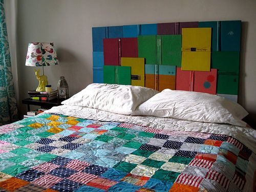 30. Book Headboard: My apartment doesn’t have much on the walls. I’ve always wanted a headboard. I love books. Answer? Book headboard. (via jessyratfink)