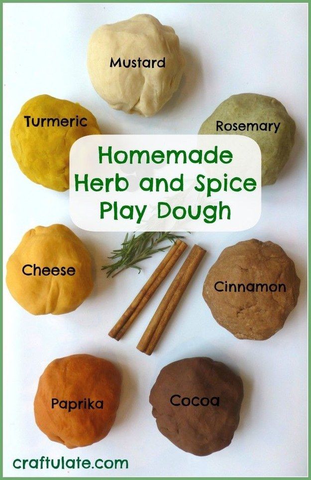 24. Herb and Spice Play Dough: This homemade all-natural herb and spice play dough uses natural ingredients to add scent and colour. (via Craftulate)