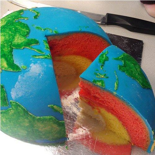 34. Earth Structural Layer Cake: A little while ago, my sister approached me with an idea. She’s doing an education degree, and her and her friends had to give a series of lessons on the geological sciences to a class of primary school kids. One of their lessons involved teaching the kids about the structure of the Earth. One of (via Cakecrumbs)