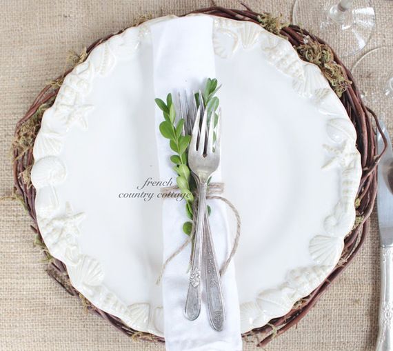 24. Grapevine Wreaths: grapevine wreath chargers table setting shabby roses flowers (via French Country Cottage)