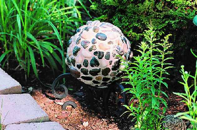 4. River Rock Bowling Ball Garden Art: Bowling ball garden art projects are a fun way to display your garden style. Create this craft with river rock, or use mirror tiles or sparkling gems. (via Birds and Blooms)