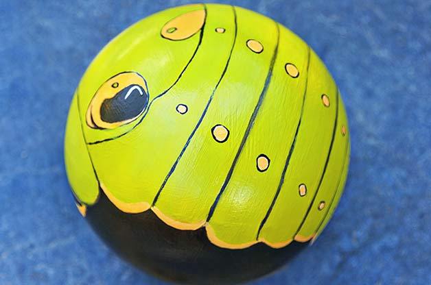 27. Caterpillar Bowling Ball Art: Garden visitors will be bowled over by this very friendly bowling ball art. It makes a great doorstop, but also looks sweet nestled in a flower patch. (via Birds and Blooms)