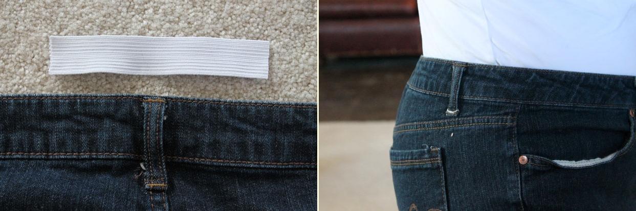 2. How to Take in the Waist on a Pair of Blue Jeans: How to Take in the Waist on a Pair of Blue Jeans. If your waist is quite a bit smaller than your hips, you may suffer from gaposis when you buy jeans to fit your hips. This leaves plenty of room in the waistband, creating a clear view of, ahem, you know, your unmentionables. Well, there is a fix for your jeans to help keep those… (via eHow)