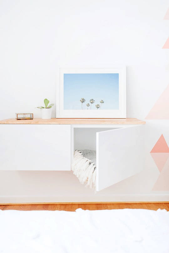 25. Floating Credenza: Of course no room makeover is truly completely until it involves a good Ikea hack, and this DIY Ikea hack floating credenza was the perfect fit! (via Sugar and Cloth)