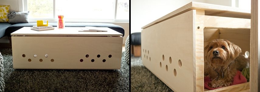 11. Modern Pet Crate Coffee Table: HGTV blogger Erin Loechner demonstrates how to combine a modern pet crate and coffee table into one. (via HGTV)