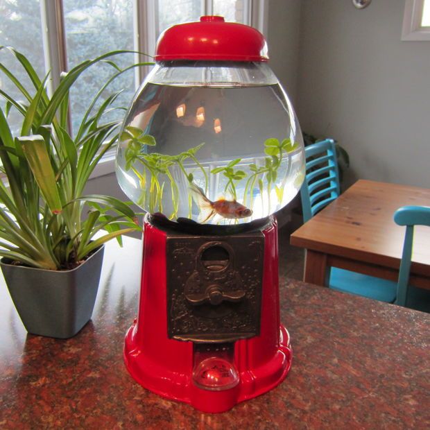 14. Gumball Machine Fish Tank: What says ‘I love you’ better than the gift of a pet goldfish? I know it’s not a fuzzy little kitten or a tiny soft puppy but it is a lot easier to ta… (via Instructables)