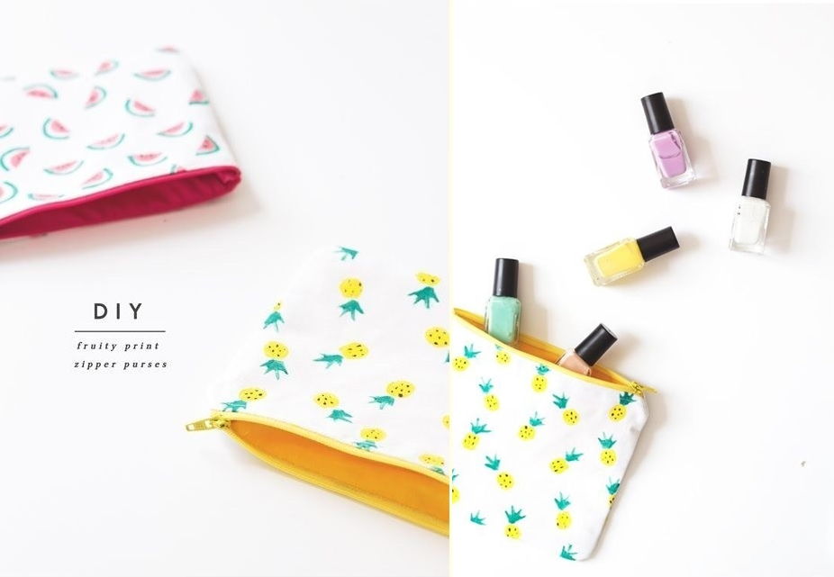 31. Fruity Print Zipper Purses: I think its definitely time for another DIY! This one’s been hanging around for a while waiting to be posted and I’ve only just got down to it.After my crazy work stint trying to get my etsy shop … (via The Lovely Drawer)