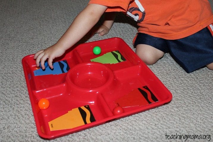 32. Color Matching Game: Today Im sharing an easy activity for teaching colors. I was noticing the other day that my youngest (22 months) kept calling everything green. I know hes still young, but I thought I would just try an activity to introduce him to some colors. For this activity, I used a plastic tray (from The Dollar (via Teaching Mama)