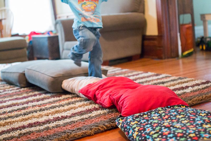 33. Walking on Pillows: I’m almost embarrassed to post this gross motor activity. it seems too simple to warrant a post. But with that said, it was super duper fun and had George moving all morning long! And its perfect for those days you’re stuck indoors, when its cold or rainy. (Hey, its Iowa here and spring has taken a long (via hands: on as we grow)
