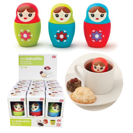 29. Babushka Tea Infuser: 4 pcs x 3 colors: Blue, Green, & Red. Each piece includes Babuska, mesh basket, and holder. Handwash only, do not use in microwave. (via DCI Gift)