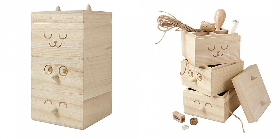 22. Studio Arhoj Totem Box: Built like a totem pole, the Totem Box is a small tower made to keep your little bits and bobs in order. Each Totem contains a different interior with many or few compartments.The basic tower consists of three Totems: Cat, Owl and Bird.Built in wood (via Huset Shop)