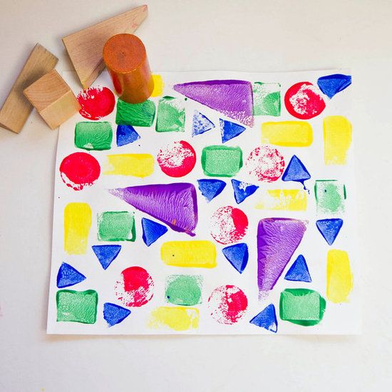 2. Wooden Block Prints: This project is as simple as collecting a few of your toddler’s wooden blocks and adding some paint. Block prints are colorful and fun, with bold and geometric results. Plus, this art activity is seriously easy, making it perfect for little ones. If (via Popsugar)