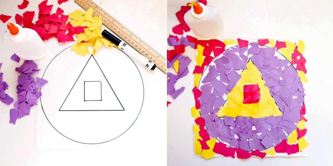5. Torn Paper Shape Collage: If you’ve got a tot who’s not thrilled about getting crafty, here is an activity that will have his fingers excited about creating. Along with boosting fine motor skills, this torn paper collage craft appeals to kids who like order and defined (via Popsugar)
