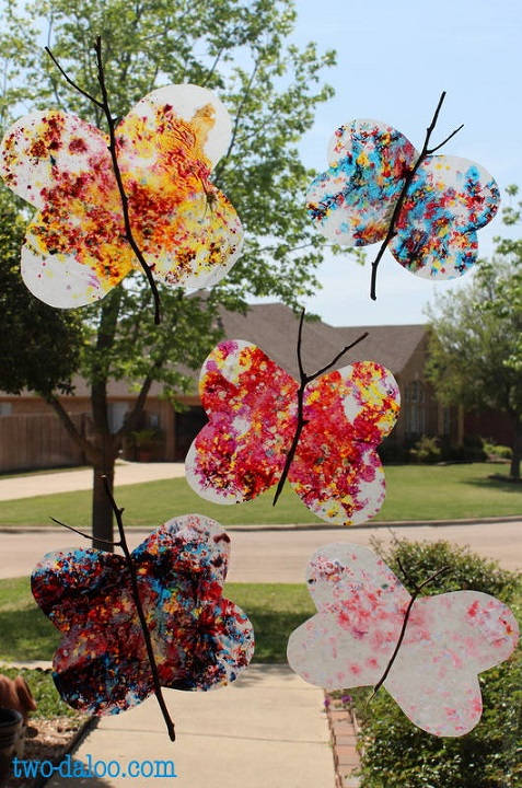 10. Butterfly Suncatchers: Make these beautiful butterfly suncatchers with melted crayons, wax paper, and sticks from the back yard! Also includes a roundup of suncatcher ideas for toddlers. (via Two Daloo)