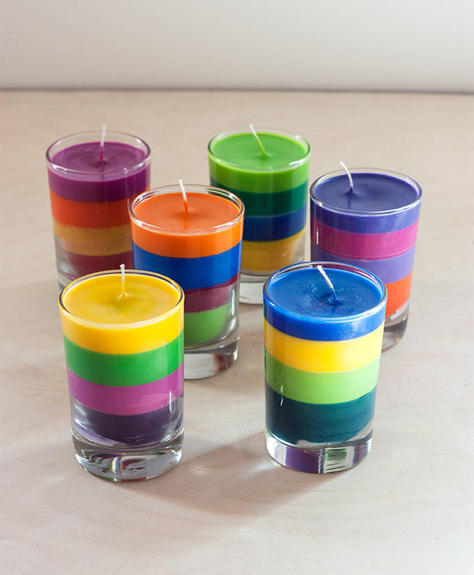 26. Crayon Candles: My obsession with bright colors got me hooked when I saw this tutorial by Brit+Co. I already had a bunch of old crayons on hand from my previous DIY crayon post and I’ve been interested in making candles lately, so this was the perfect project! Once you’ve gathered your supplies and setup a wor… (via Adventures in Making)