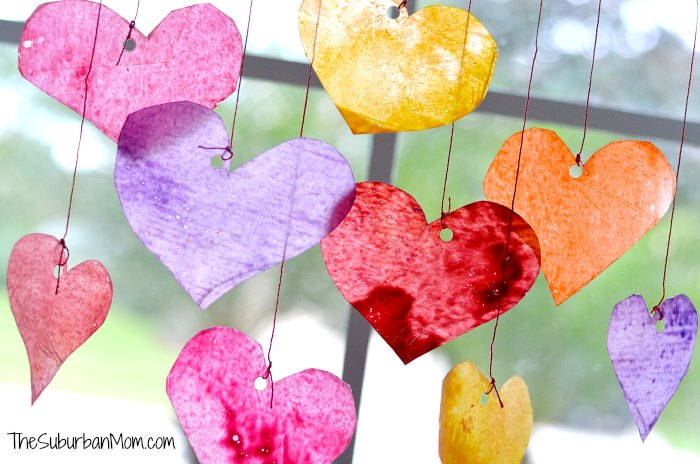 29. Sun Catchers: Make these easy Valentine’s Day Sun Catchers with broken crayons. Your kids will love this easy Valentine’s Day kids craft. Plus it is a pretty decoration. (via The Suburban Mom)
