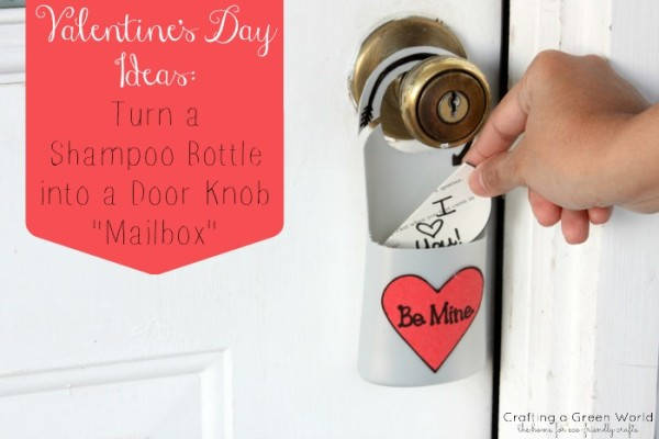 4. Door Knob “Mailbox”: Try recycled Valentine’s Day ideas instead of buying new — like turning an empty shampoo bottle into a door knob mailbox! (via Crafting a Green World)