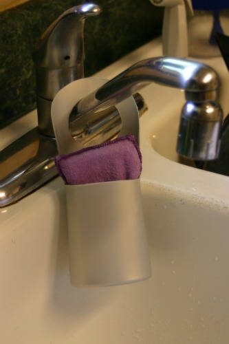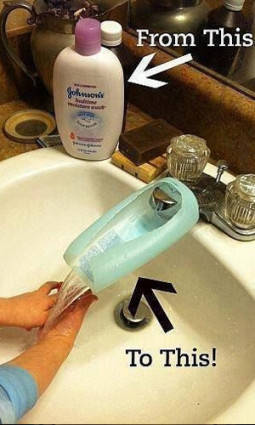 23. Sponge Holder: At my house we have a missing sponge issue– you know, when the sponge gets lost among the huge pile of dishes. My roommate and I went to the store hoping to find a solution, but all we found were overpriced sponge holders. I realize $10-$20 is not a lot for some people, but when you’re on a tight budget, it’s too much for a silly sponge holder!I decided I would make our own holder. I had an empty shampoo bottle, so I went on Pinterest for some inspiration. When I found Make It and Love It’s Holder for Charging a Cell Phone that was made from a lotion bottle, I thought, “I could hang my sponge from the faucet of the sink!” Here’s how you can make your own (via Crafting a Green World)