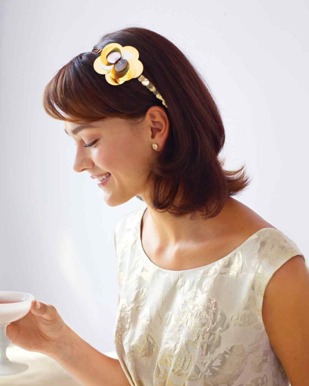 26. Paillette Flower Headband: A paillette flower glued to a sequin-trimmed headband is a charming crowning touch. (via Martha Stewart)