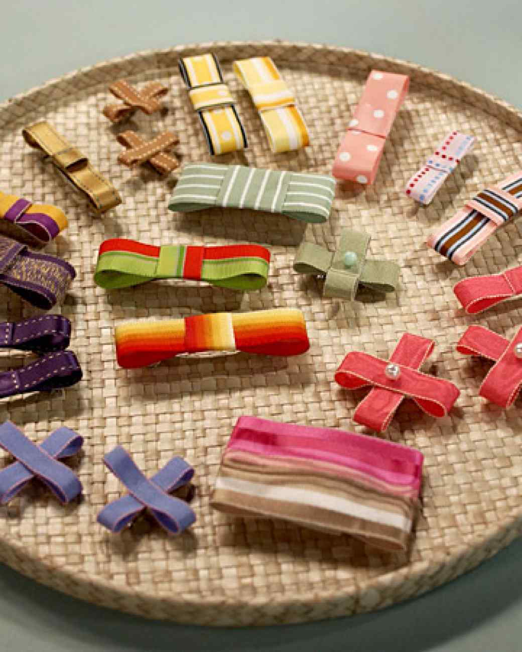 33. Ribbon Barrettes: With a minimum of materials and only a few simple steps, you can fashion an attractive barrette from a metal hair clip. (via Martha Stewart)