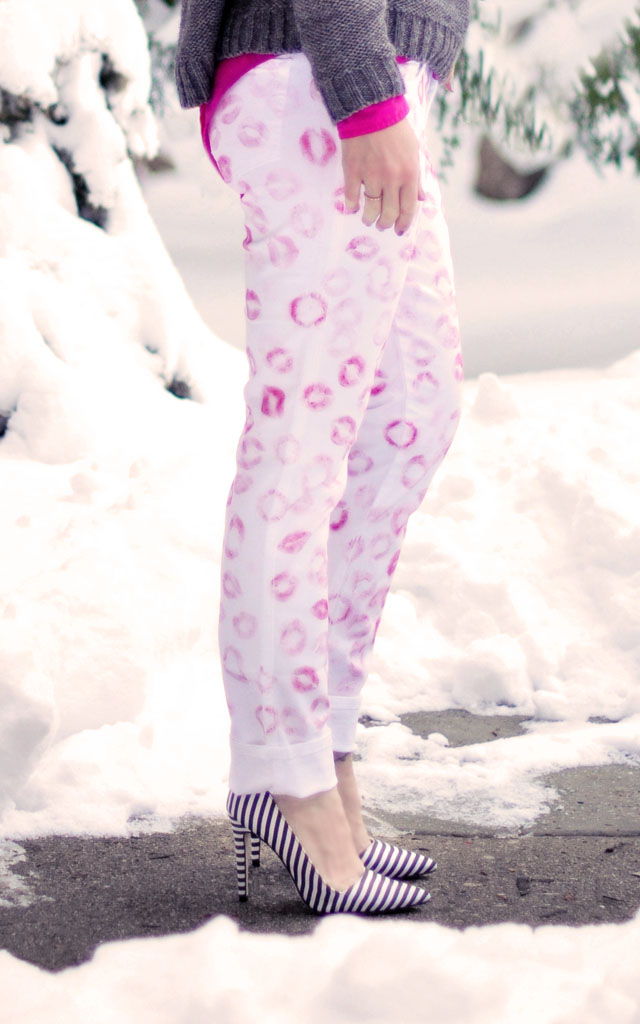 8. Lipstick Kisses Print: DIY lip printed kisses pants or jeans inspired by Erin Fetherston’s Sealed with a Kiss Collection (via …love Maegan)