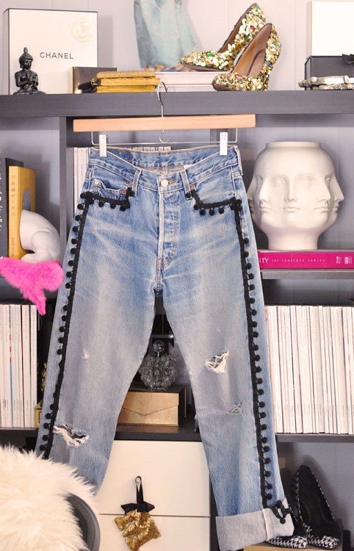 16. Pom Pom Jeans: Grab an old pair of jeans and make them unique by adding cute pom pom trim… full details in this fashion DIY tutorial using vintage Levis 501 jeans. (via …love Maegan)