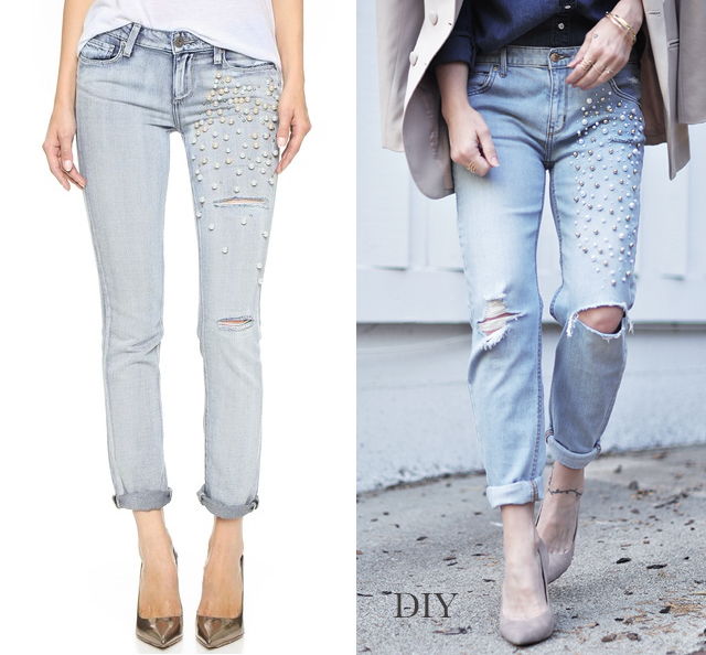 25. Pearl Embellished Jeans: Amp up an old pair of skinny boyfriend jeans with this fun and funky pearl embellished design inspired by Paige Denim skinny skinny jeans. It’s an easy way to (via …love Maegan)